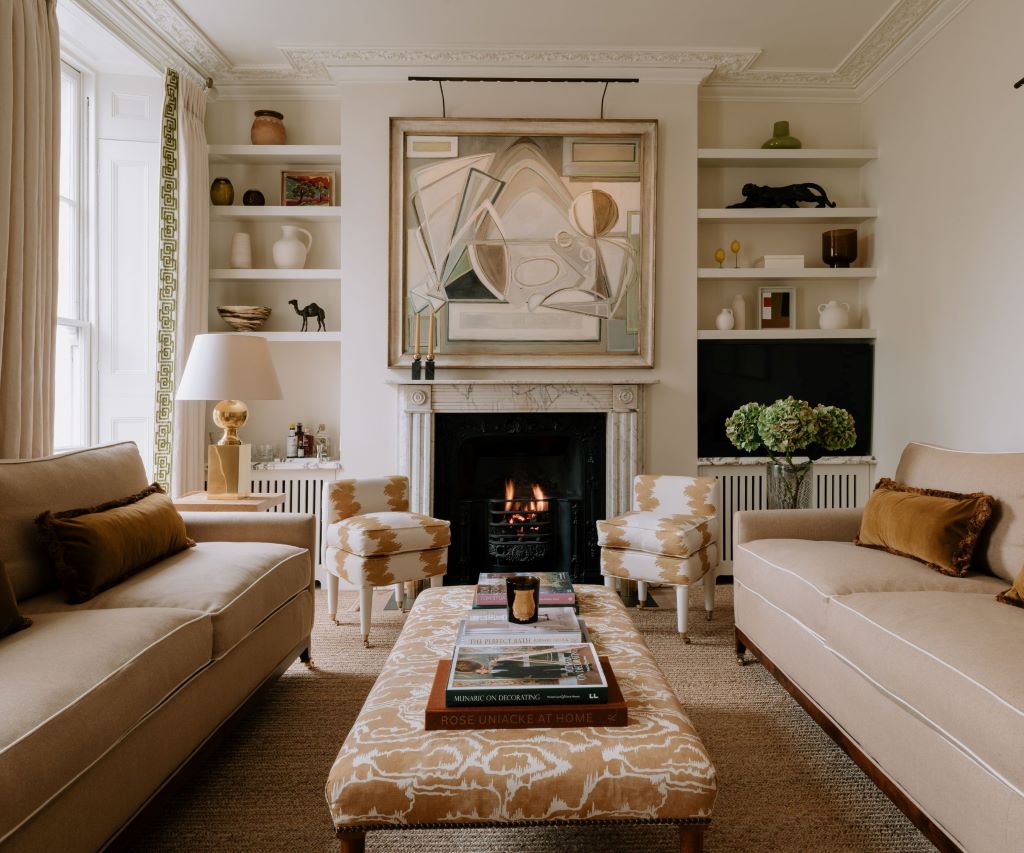 Example: A living room with warm white walls, a camel-colored sofa, and mustard yellow accents feels both modern and cozy.